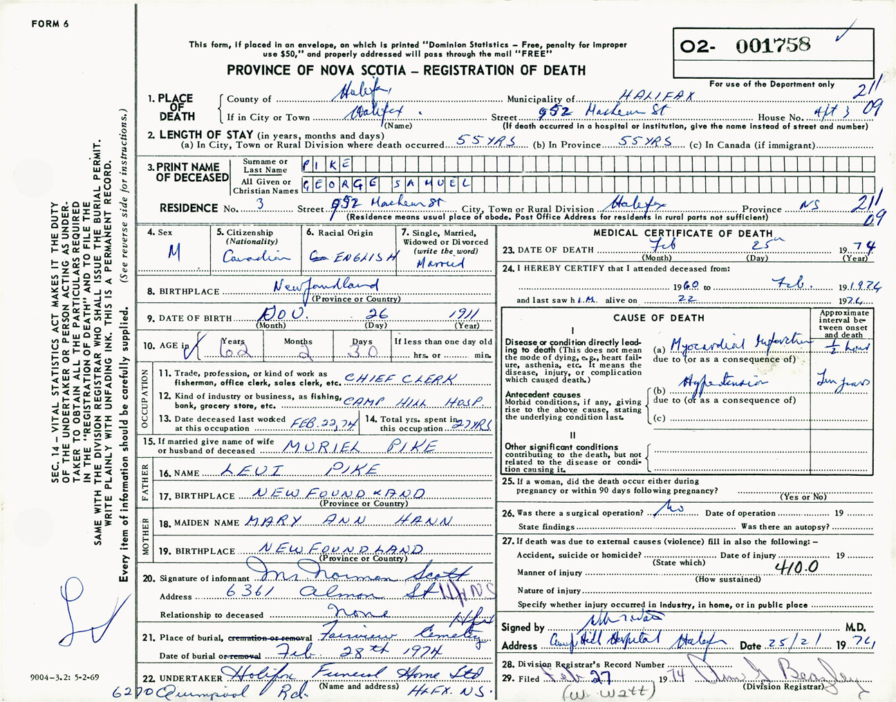 Male Death Registration: Year: 1974 number: 1758
