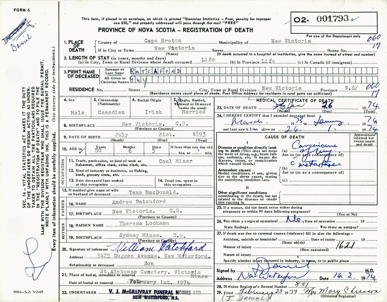 Male Death Registration: Year: 1974 number: 1793