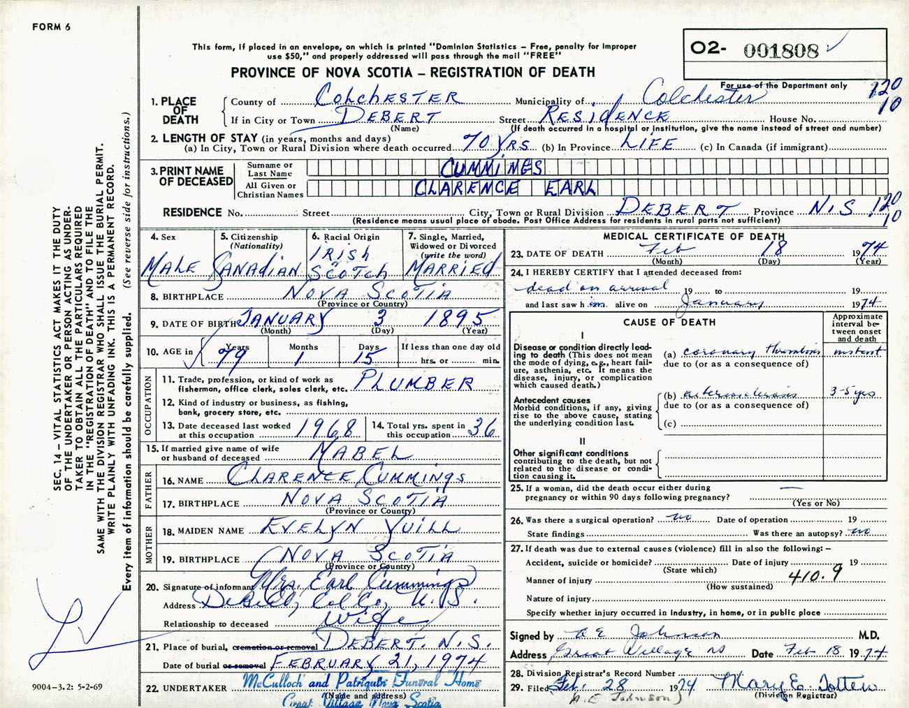 Male Death Registration: Year: 1974 number: 1808