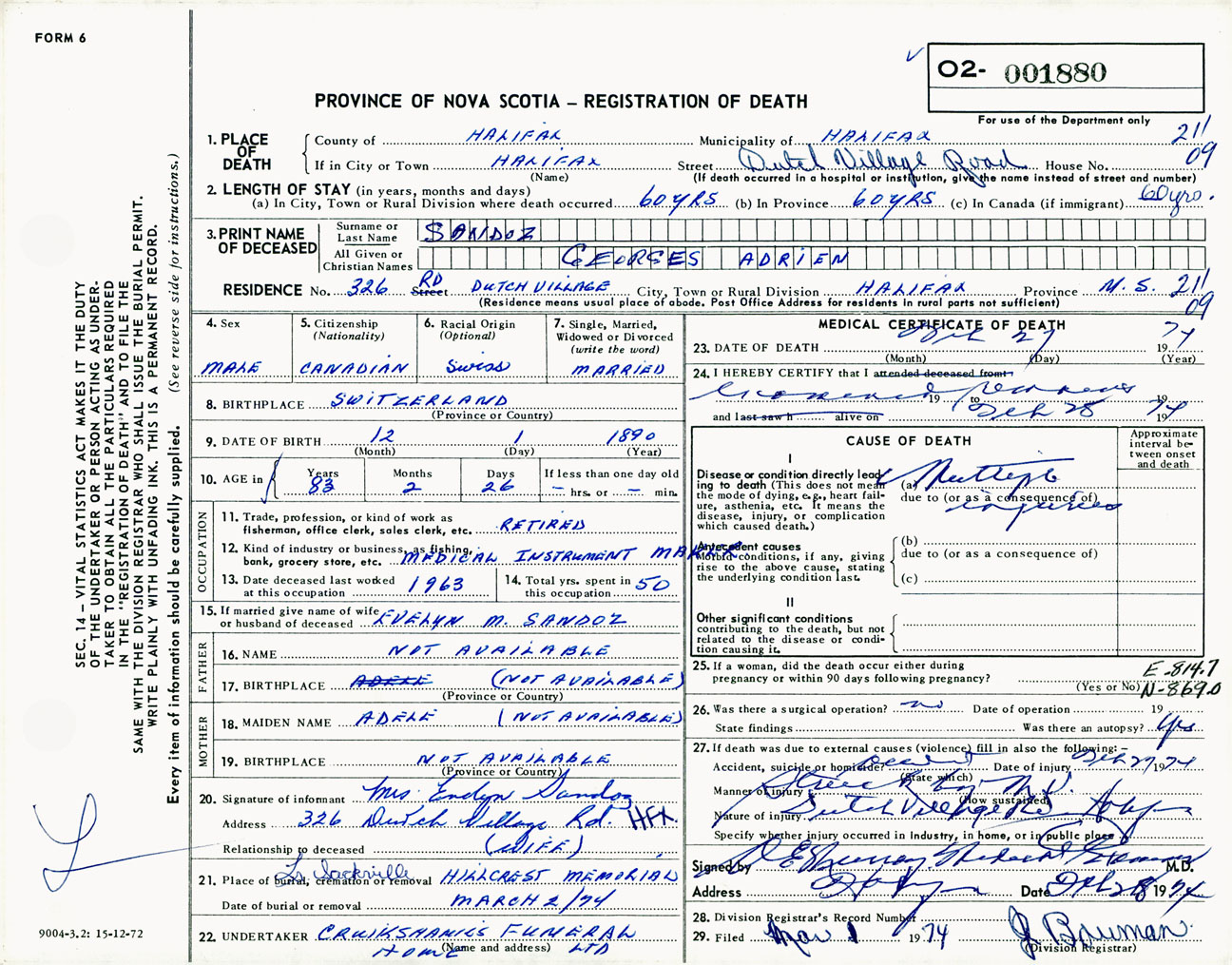 Male Death Registration: Year: 1974 number: 1880
