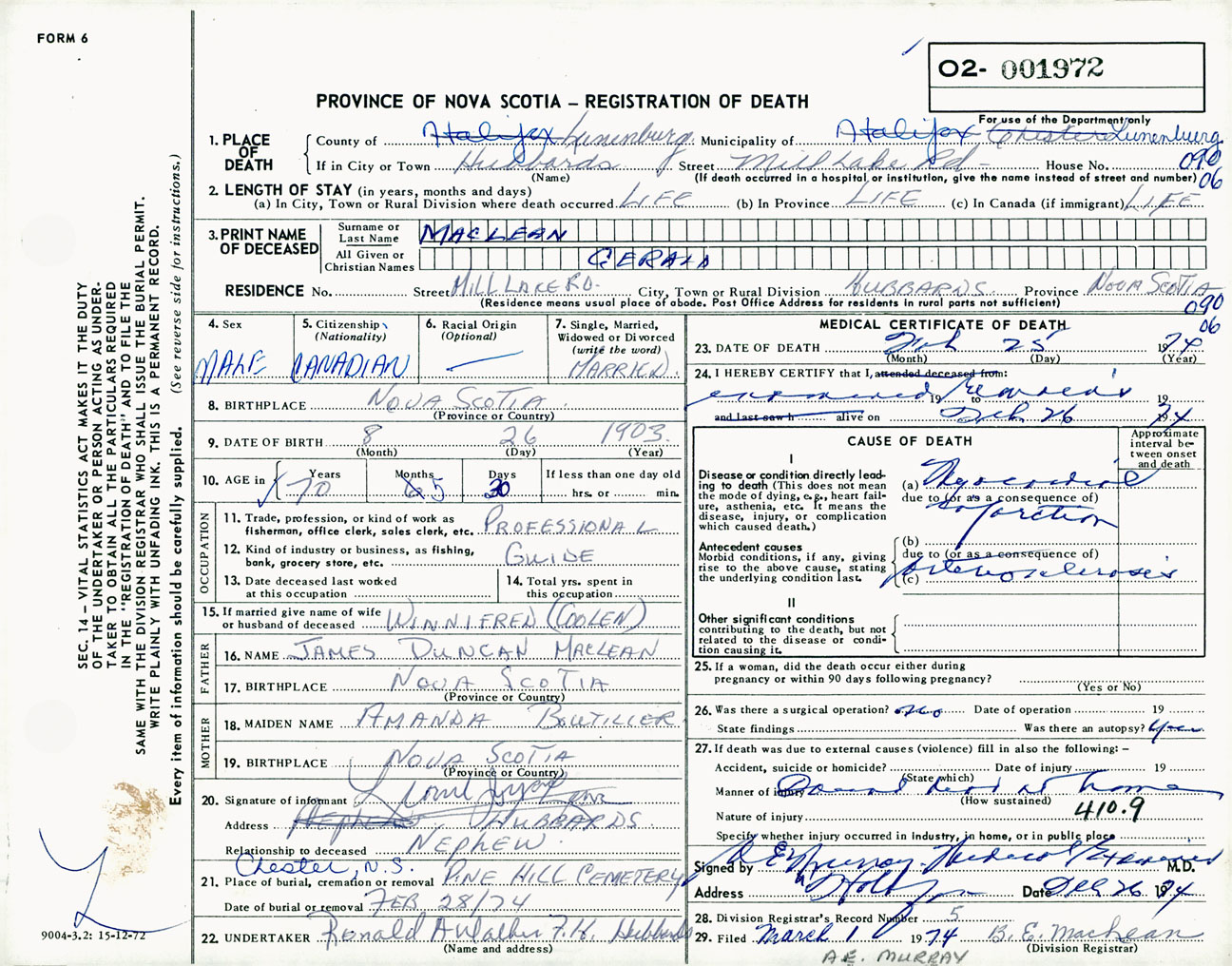 Male Death Registration: Year: 1974 number: 1972