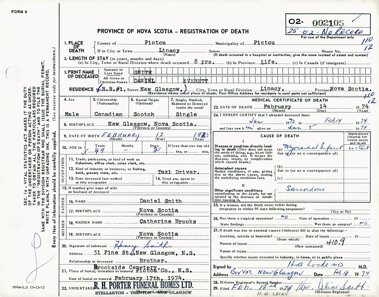Male Death Registration: Year: 1974 number: 2105