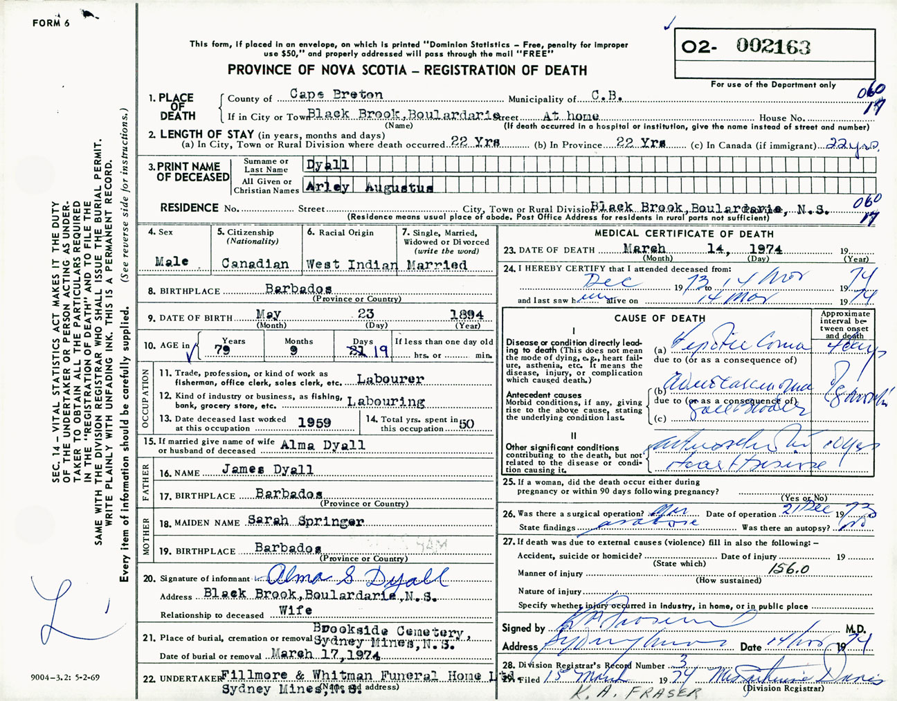 Male Death Registration: Year: 1974 number: 2163