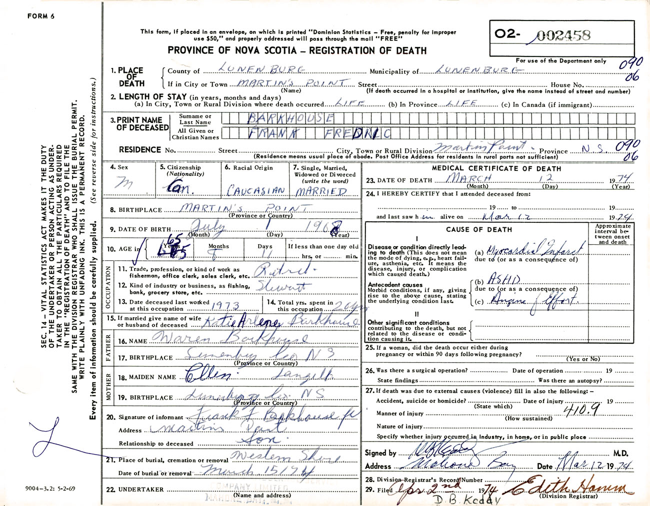 Male Death Registration: Year: 1974 number: 2458