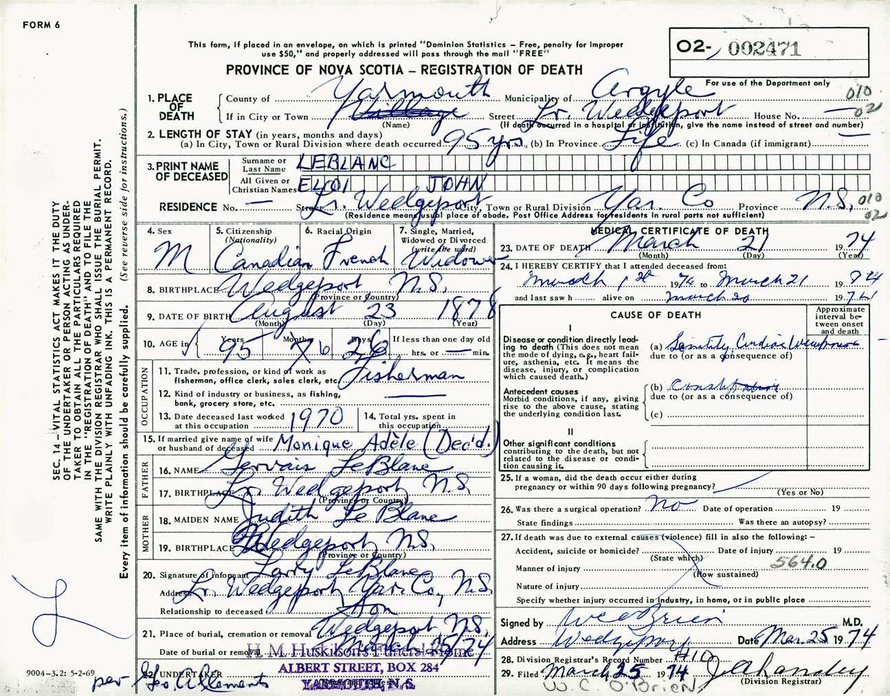 Male Death Registration: Year: 1974 number: 2471