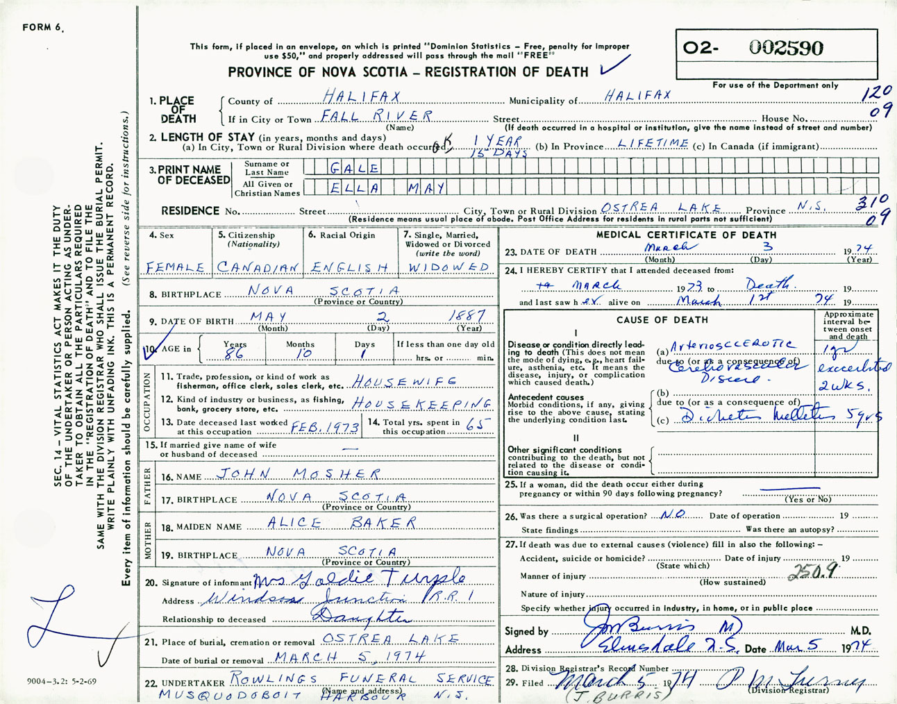 Female Death Registration: Year: 1974 number: 2590