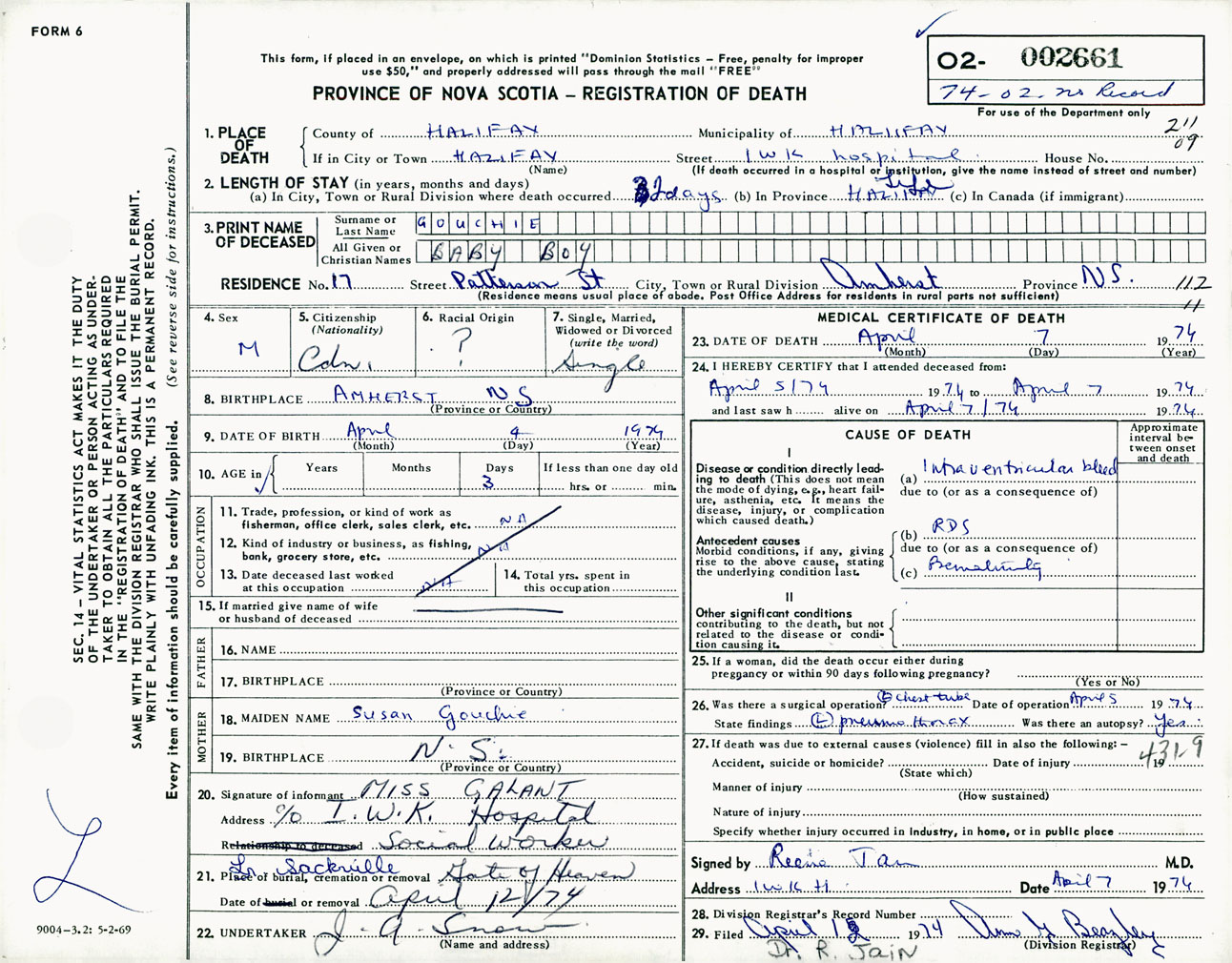 Male Death Registration: Year: 1974 number: 2661