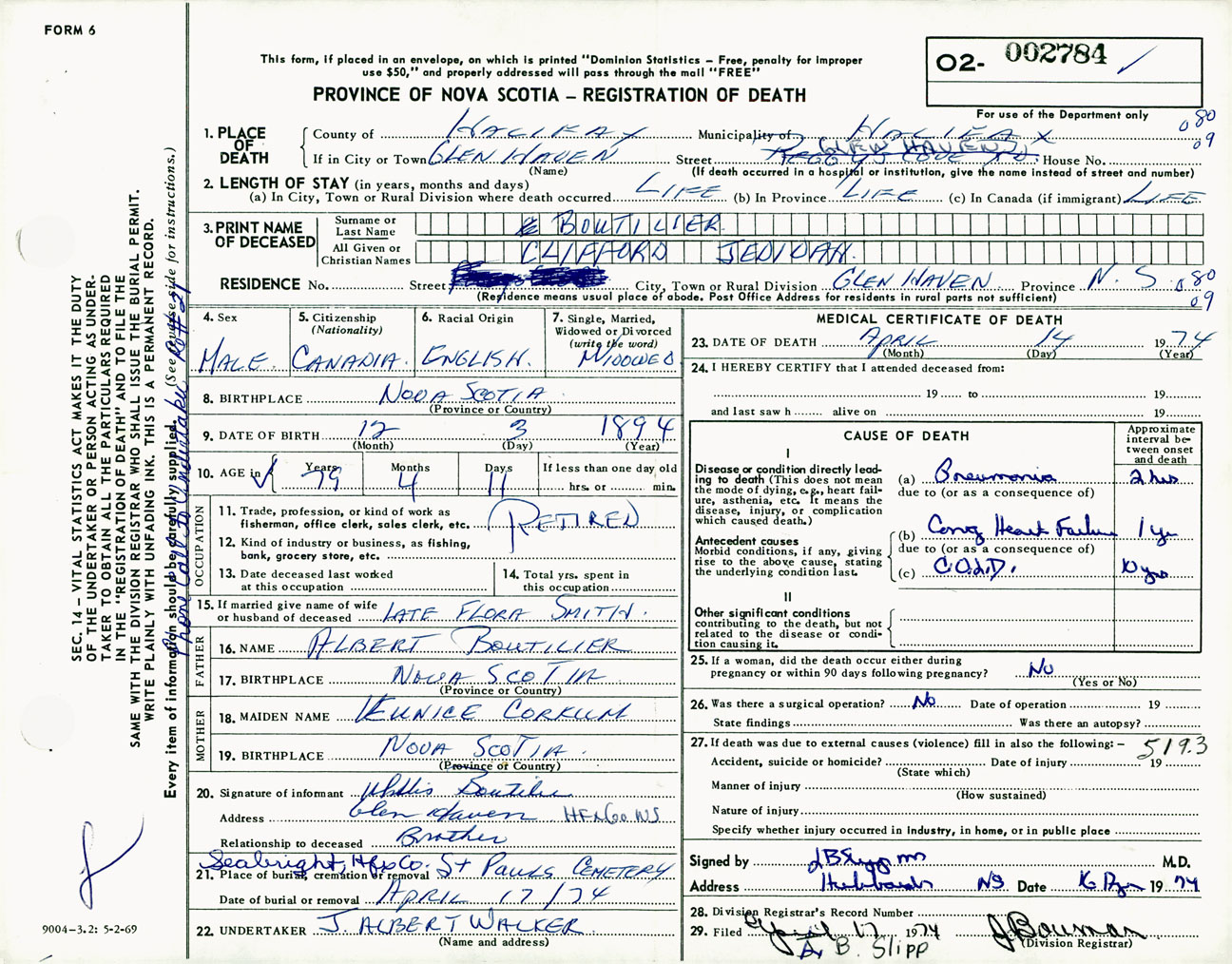 Male Death Registration: Year: 1974 number: 2784