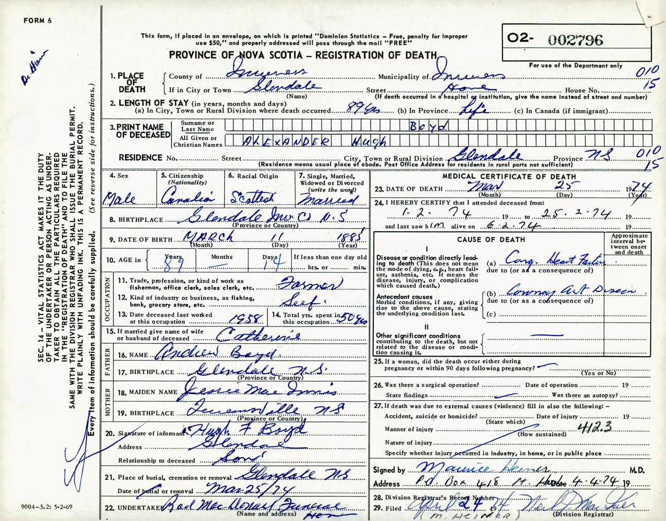 Male Death Registration: Year: 1974 number: 2796