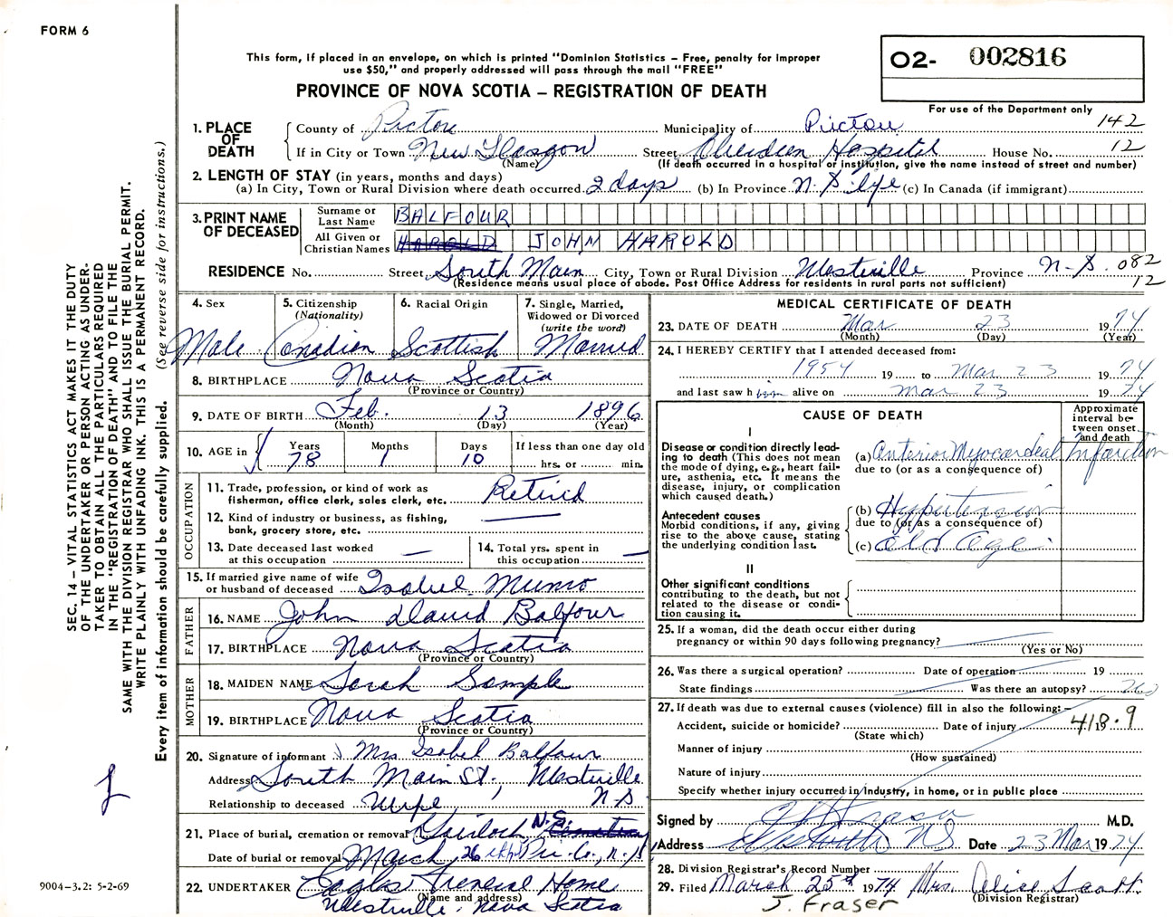 Male Death Registration: Year: 1974 number: 2816
