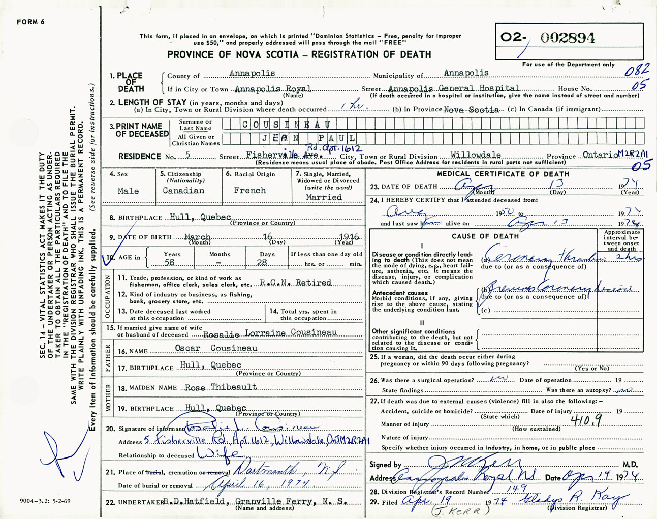 Male Death Registration: Year: 1974 number: 2894