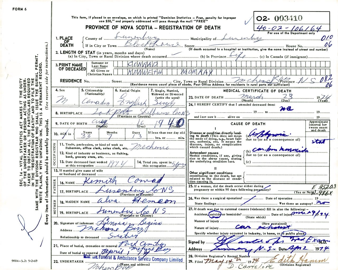 Male Death Registration: Year: 1974 number: 3410