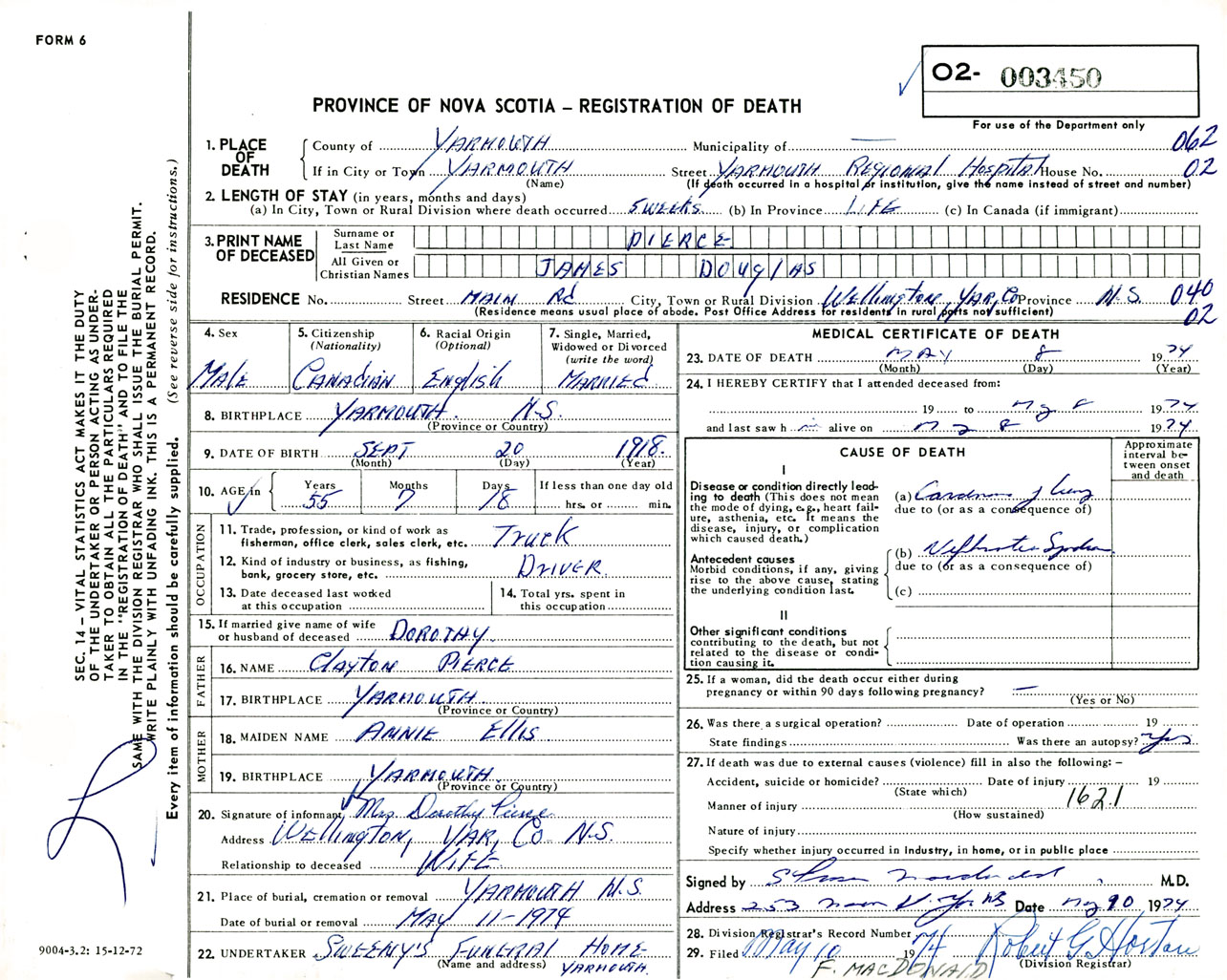 Male Death Registration: Year: 1974 number: 3450