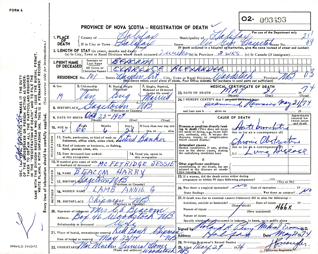 Male Death Registration: Year: 1974 number: 3493