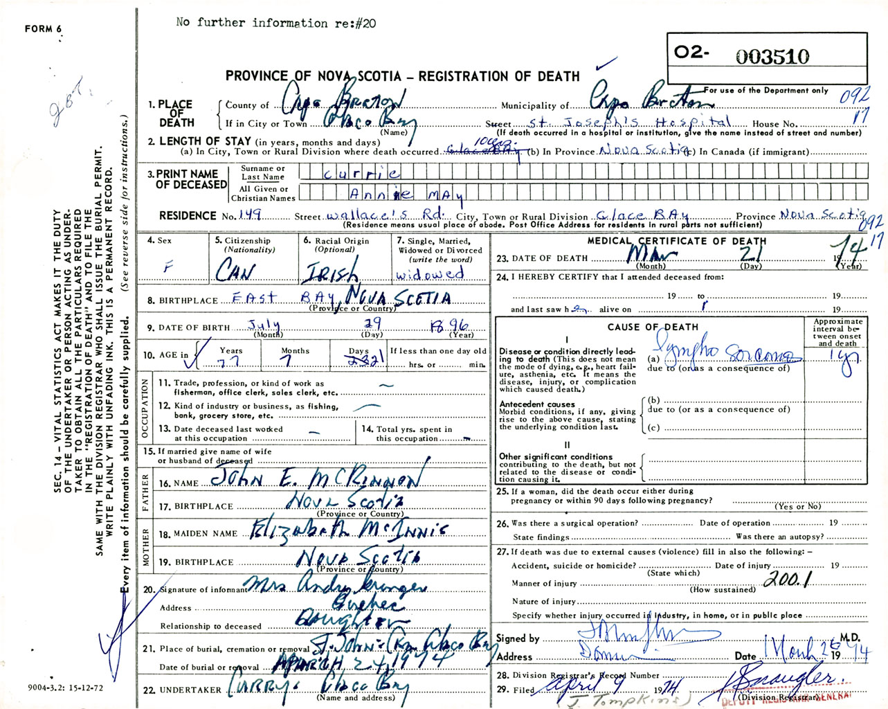 Nova Scotia Archives — https://archives.novascotia.ca/vital-statistics/death/?ID=516437
