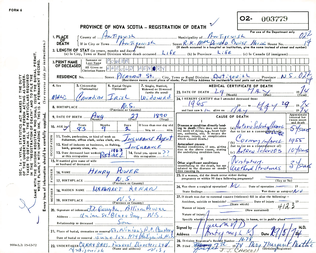 Male Death Registration: Year: 1974 number: 3779