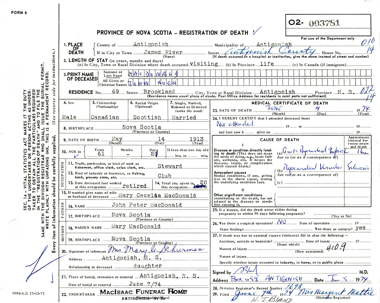 Male Death Registration: Year: 1974 number: 3781