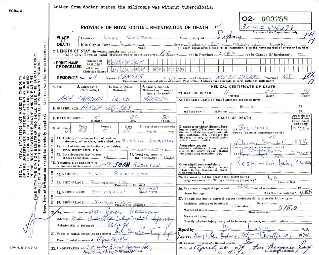Male Death Registration: Year: 1974 number: 3788