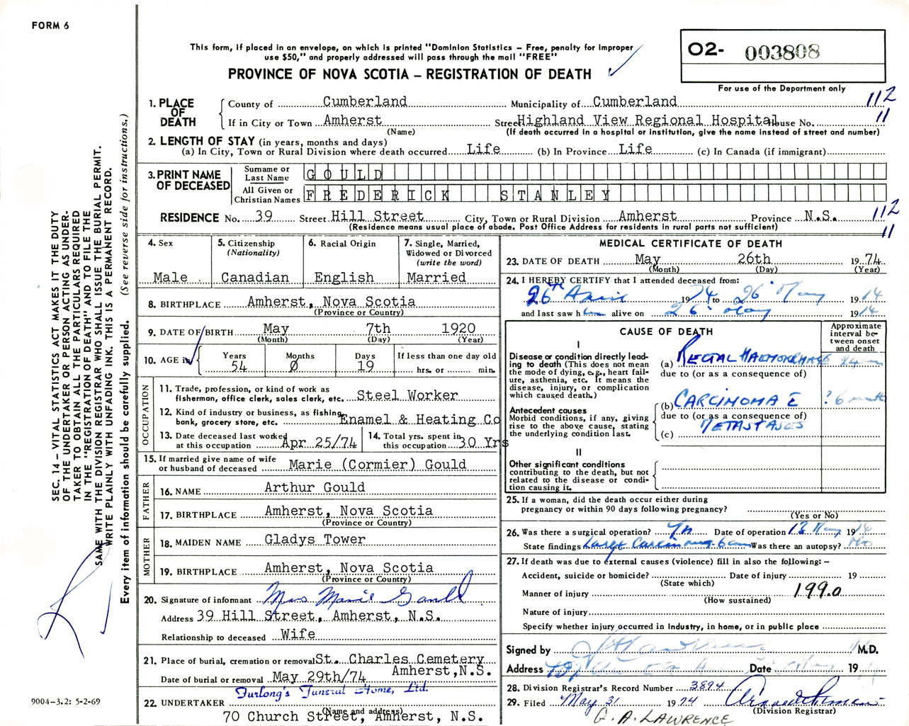 Male Death Registration: Year: 1974 number: 3808