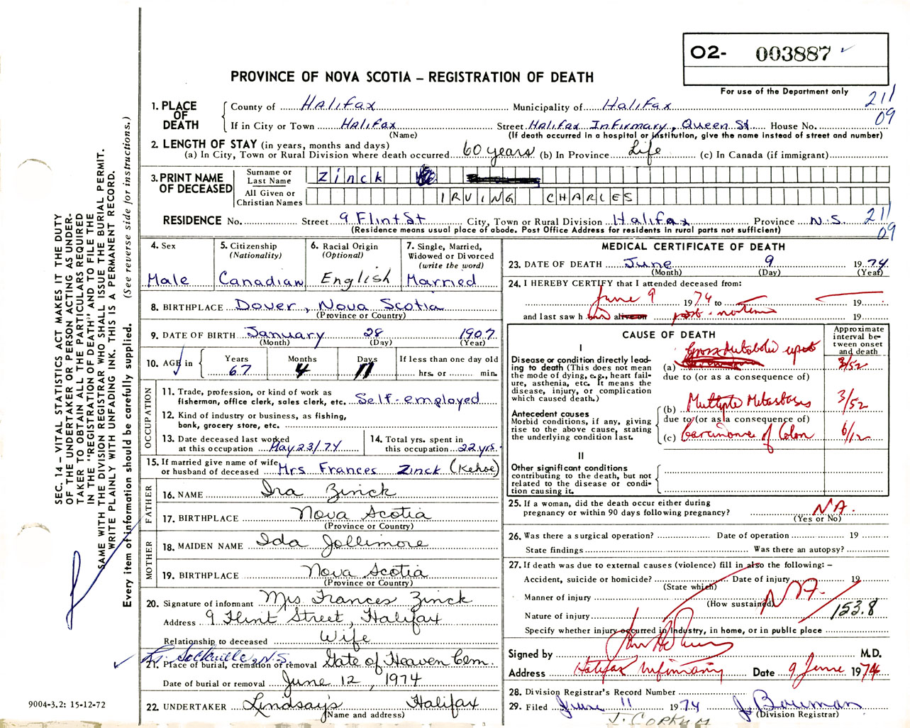 Male Death Registration: Year: 1974 number: 3887