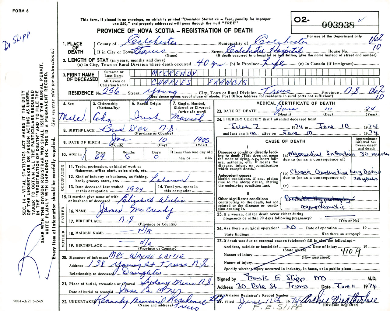Male Death Registration: Year: 1974 number: 3938
