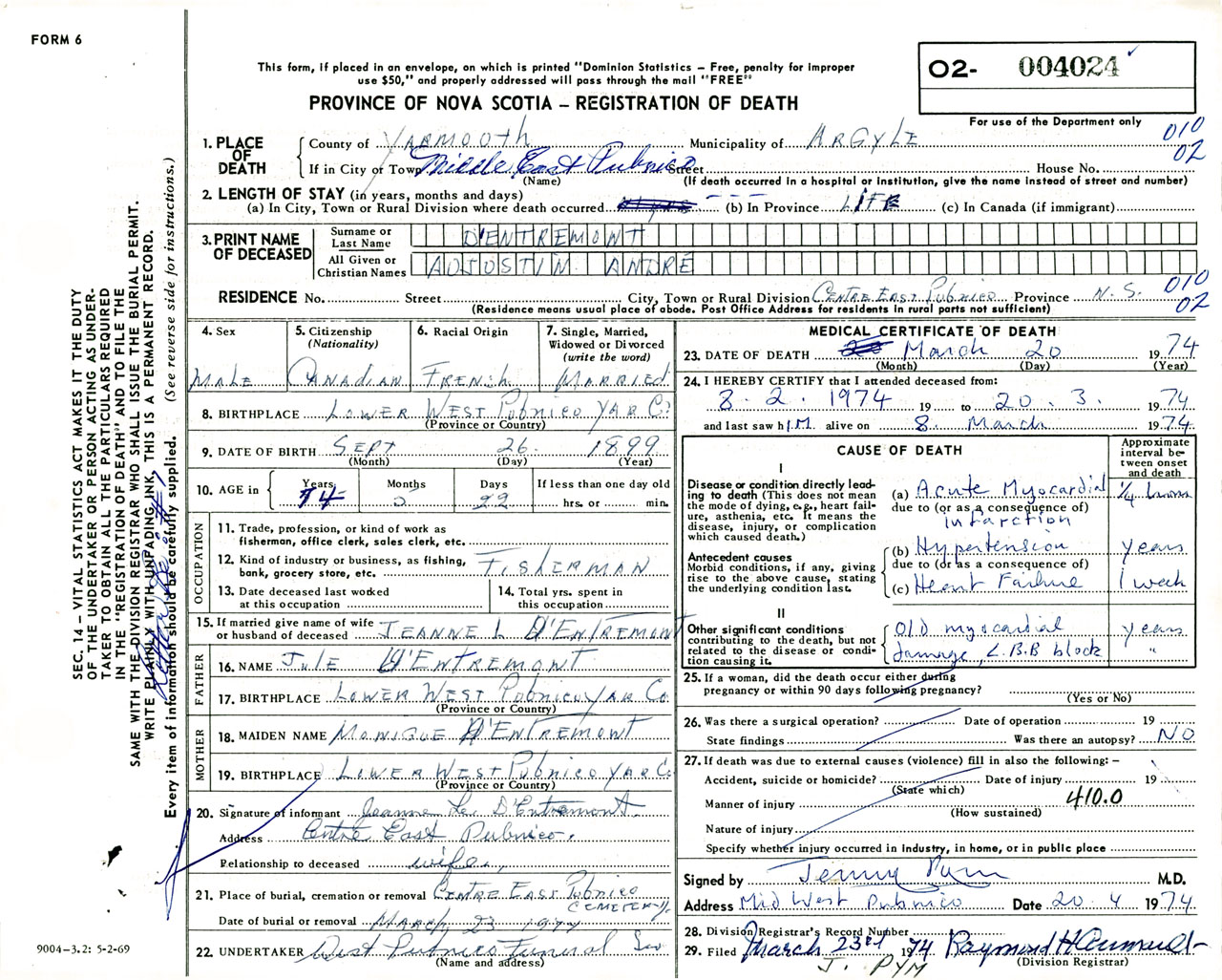 Male Death Registration: Year: 1974 number: 4024
