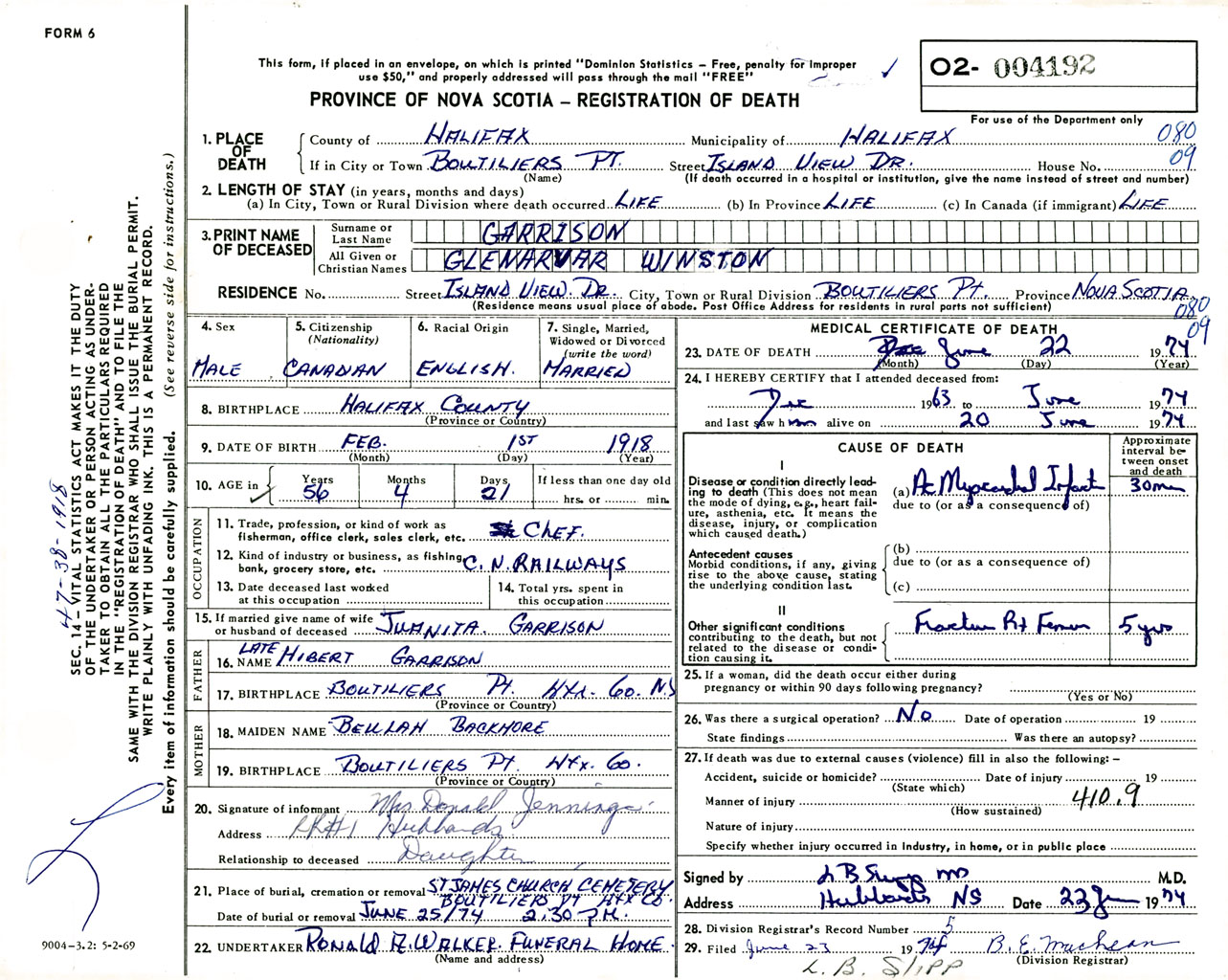 Male Death Registration: Year: 1974 number: 4192
