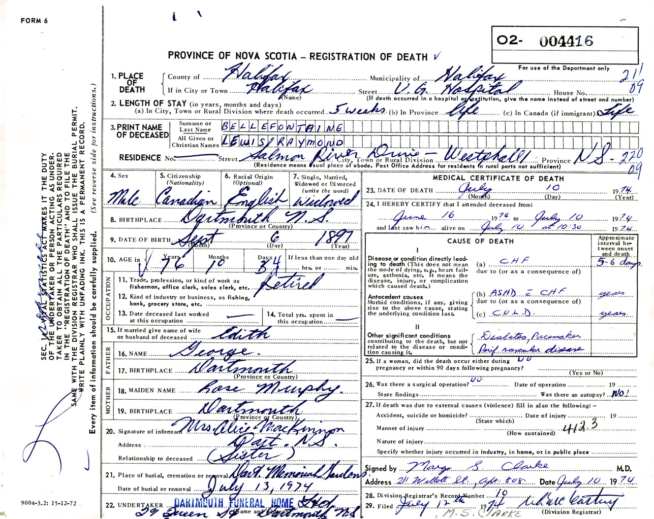 Male Death Registration: Year: 1974 number: 4416