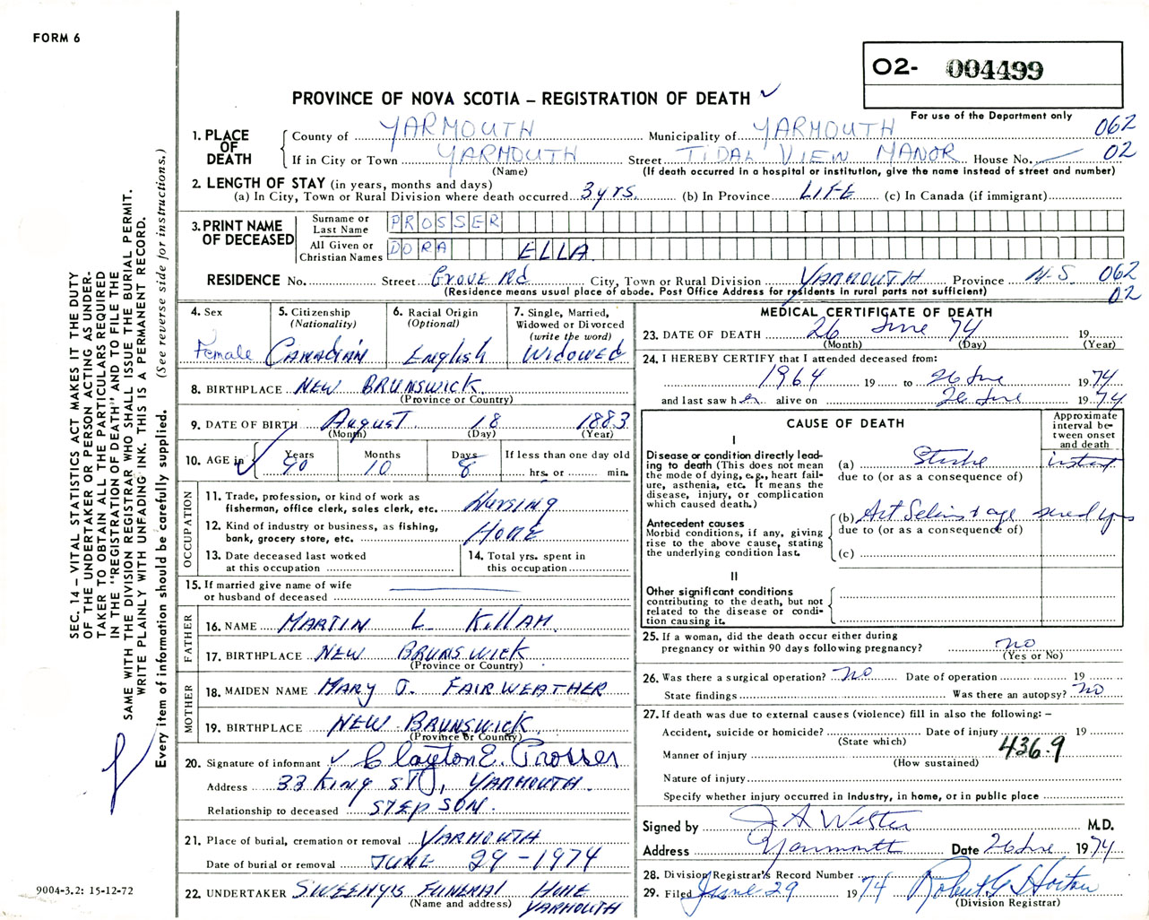 Female Death Registration: Year: 1974 number: 4499