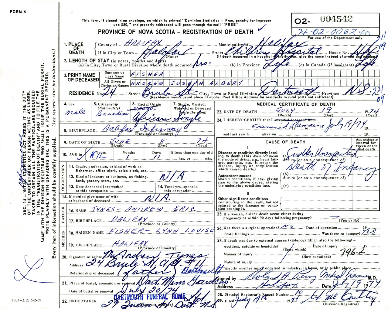 Male Death Registration: Year: 1974 number: 4542
