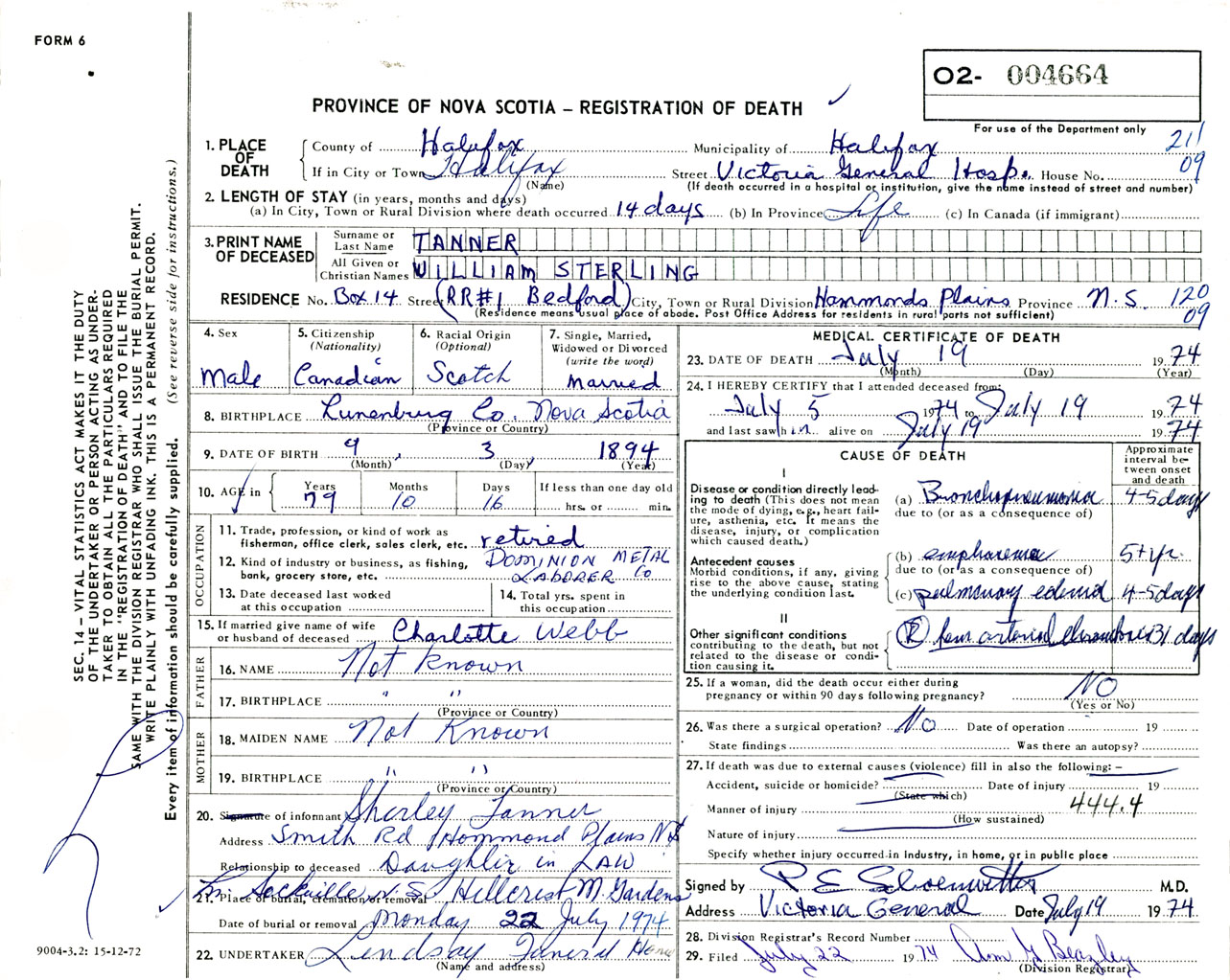 Male Death Registration: Year: 1974 number: 4664