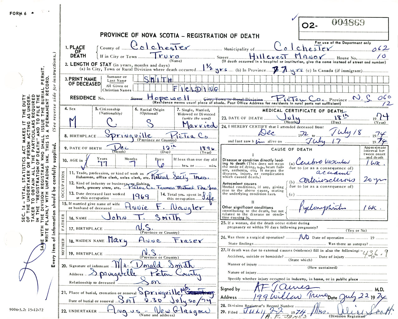 Male Death Registration: Year: 1974 number: 4869
