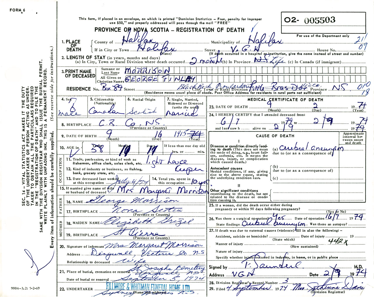 Male Death Registration: Year: 1974 number: 5503