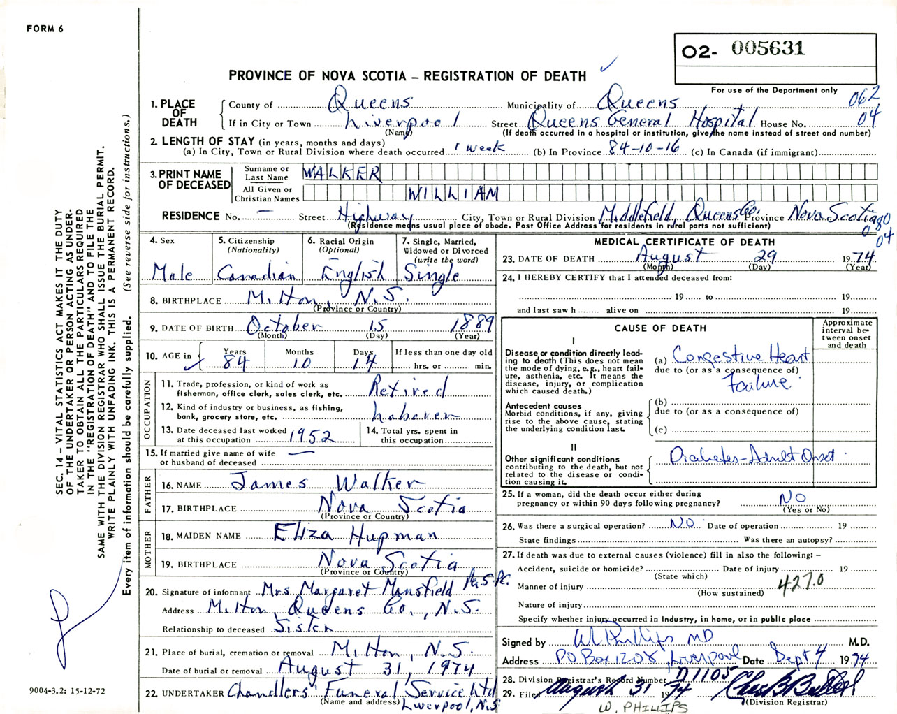 Male Death Registration: Year: 1974 number: 5631