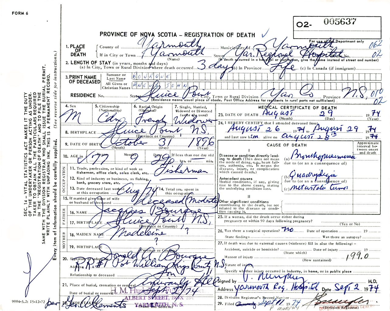 Male Death Registration: Year: 1974 number: 5637