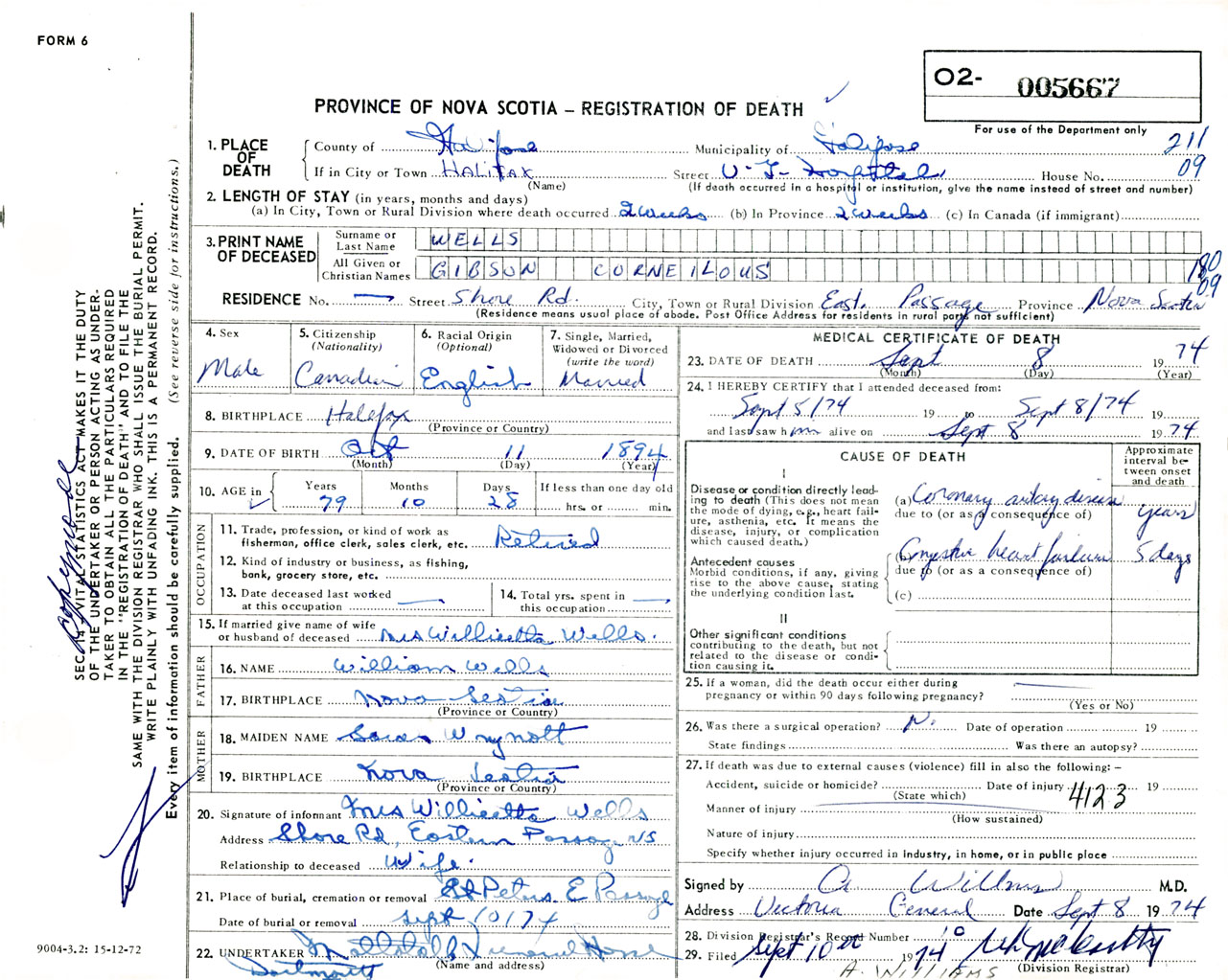 Male Death Registration: Year: 1974 number: 5667