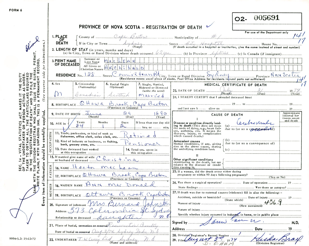 Nova Scotia Archives — https://archives.novascotia.ca/vital-statistics/death/?ID=518616