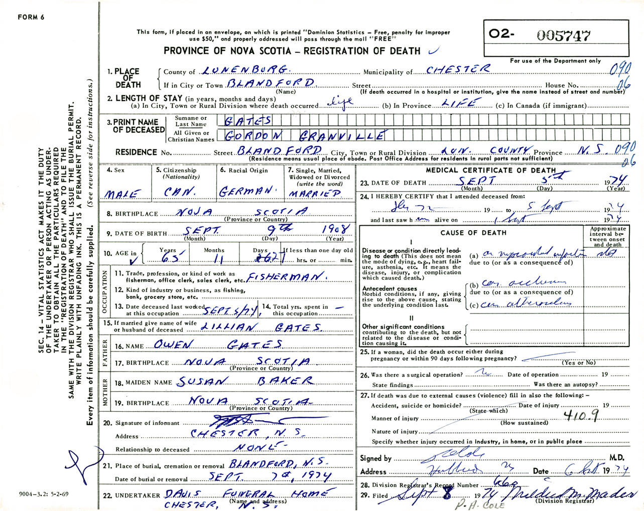 Male Death Registration: Year: 1974 number: 5747