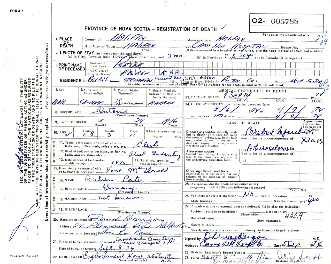 Male Death Registration: Year: 1974 number: 5788