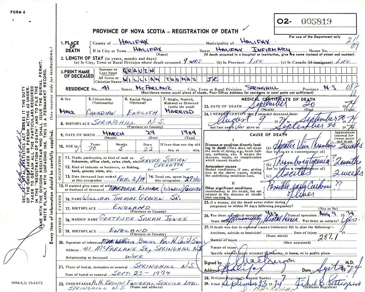 Male Death Registration: Year: 1974 number: 5819