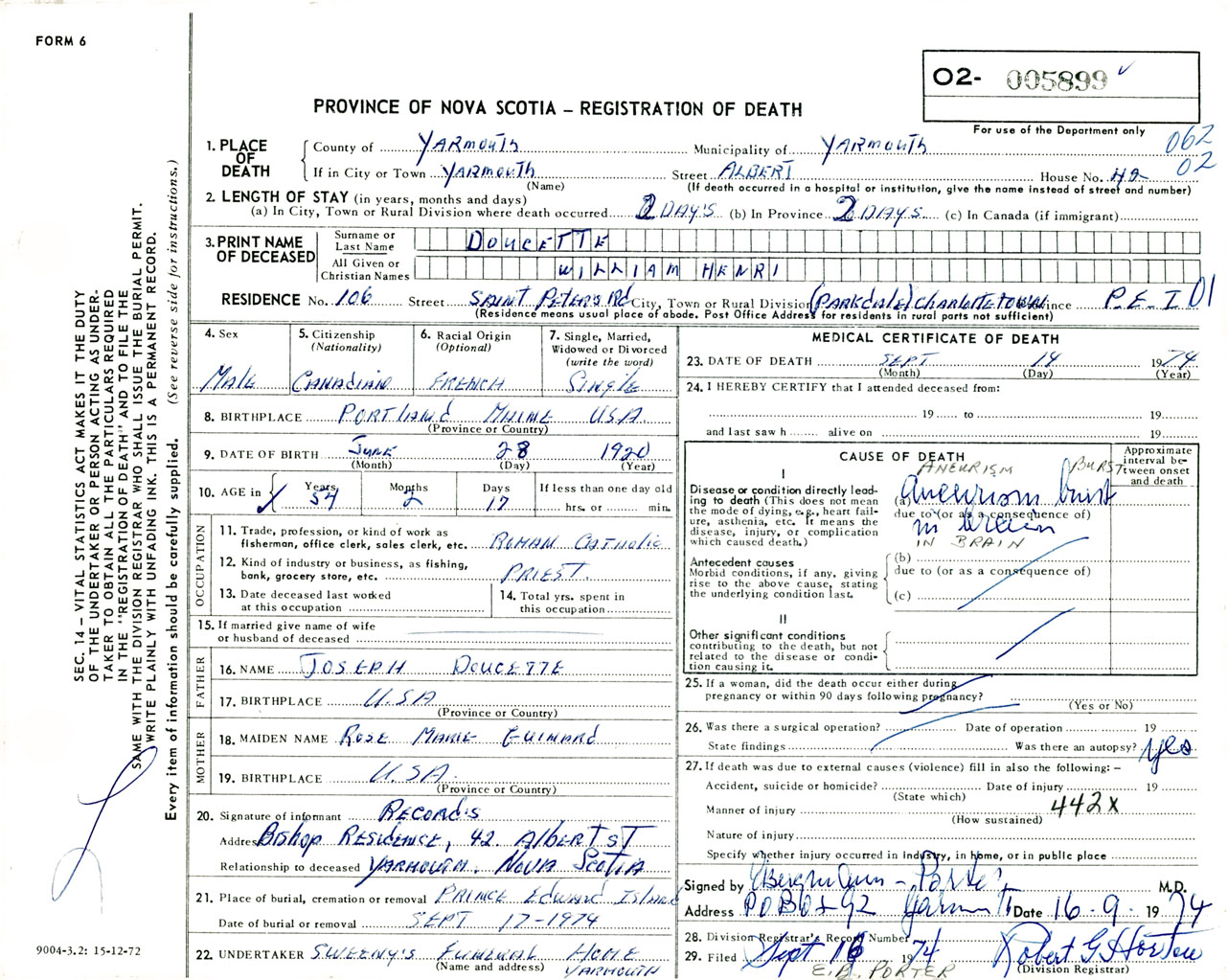 Male Death Registration: Year: 1974 number: 5899
