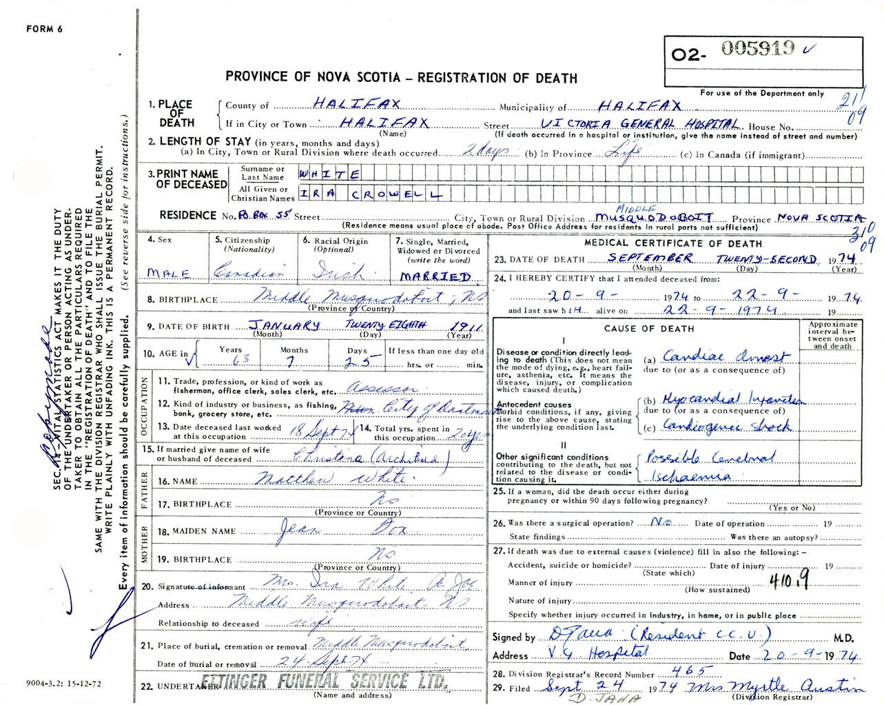 Male Death Registration: Year: 1974 number: 5919