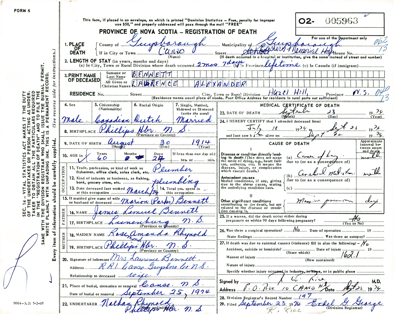 Male Death Registration: Year: 1974 number: 5963