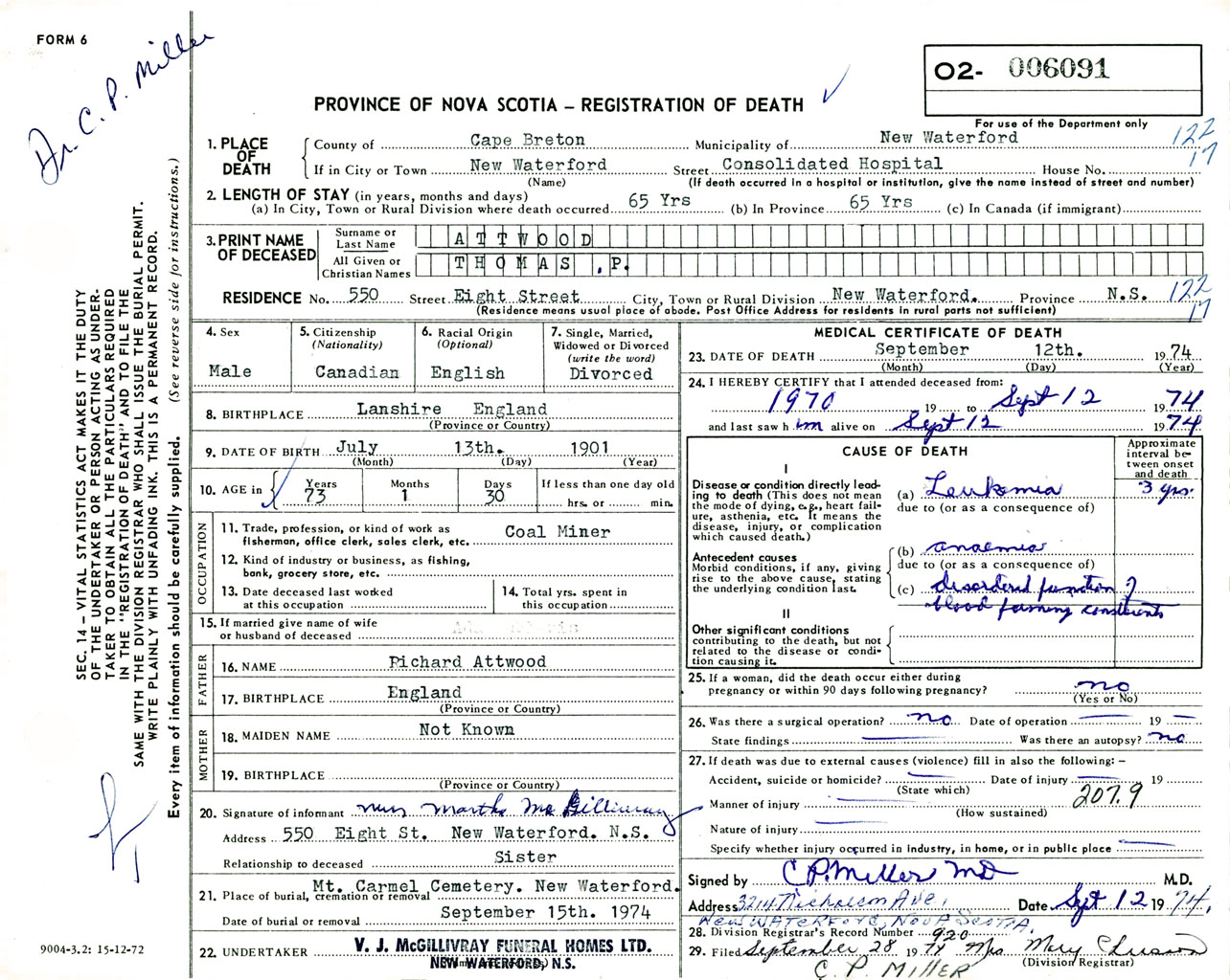 Male Death Registration: Year: 1974 number: 6091