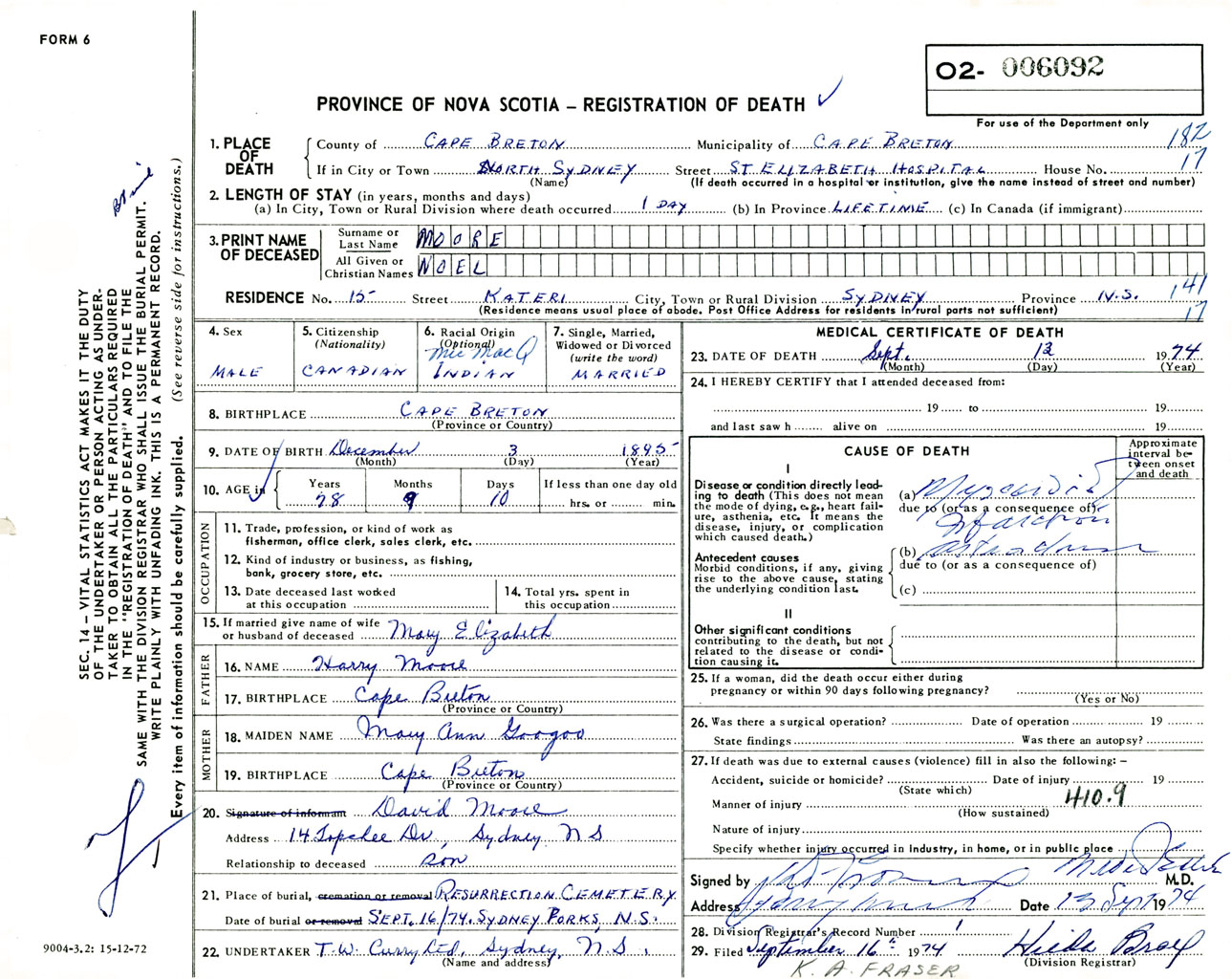 Male Death Registration: Year: 1974 number: 6092