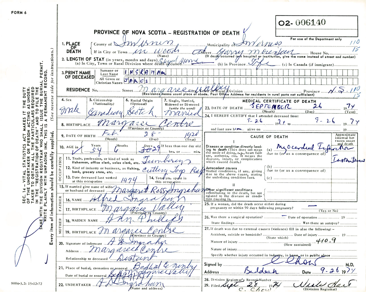 Male Death Registration: Year: 1974 number: 6140