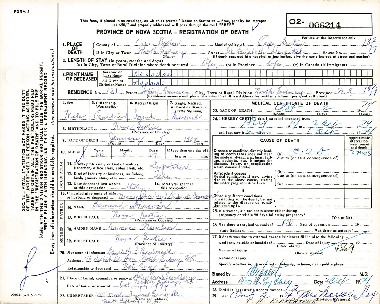 Nova Scotia Archives — https://archives.novascotia.ca/vital-statistics/death/?ID=519138