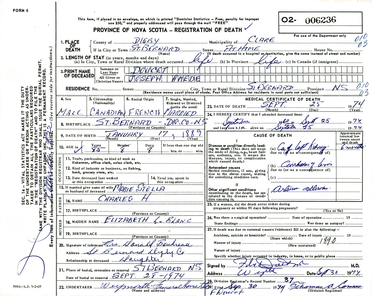 Male Death Registration: Year: 1974 number: 6236