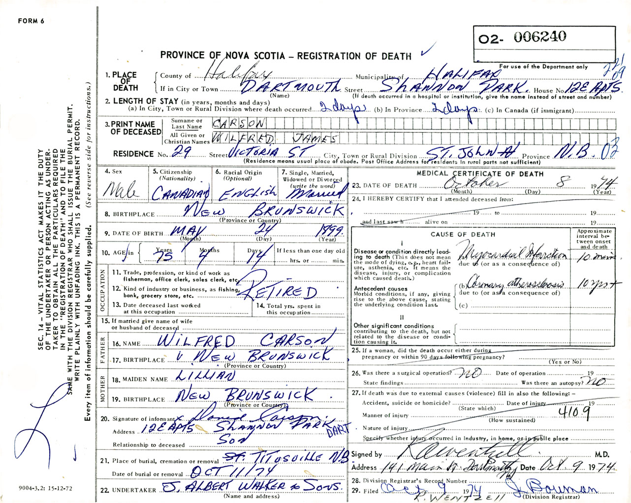 Male Death Registration: Year: 1974 number: 6240