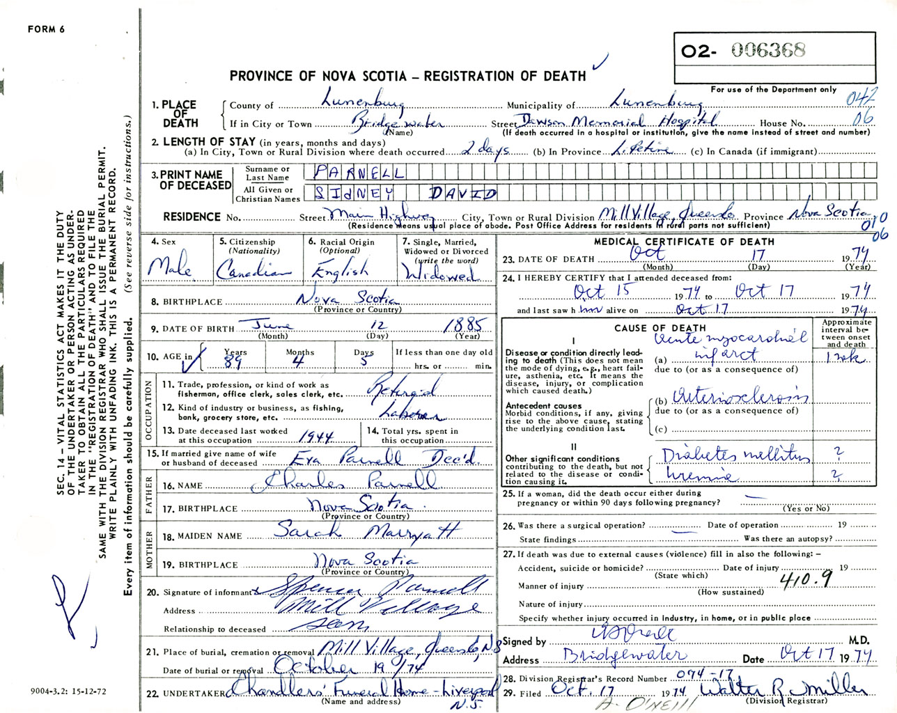 Male Death Registration: Year: 1974 number: 6368